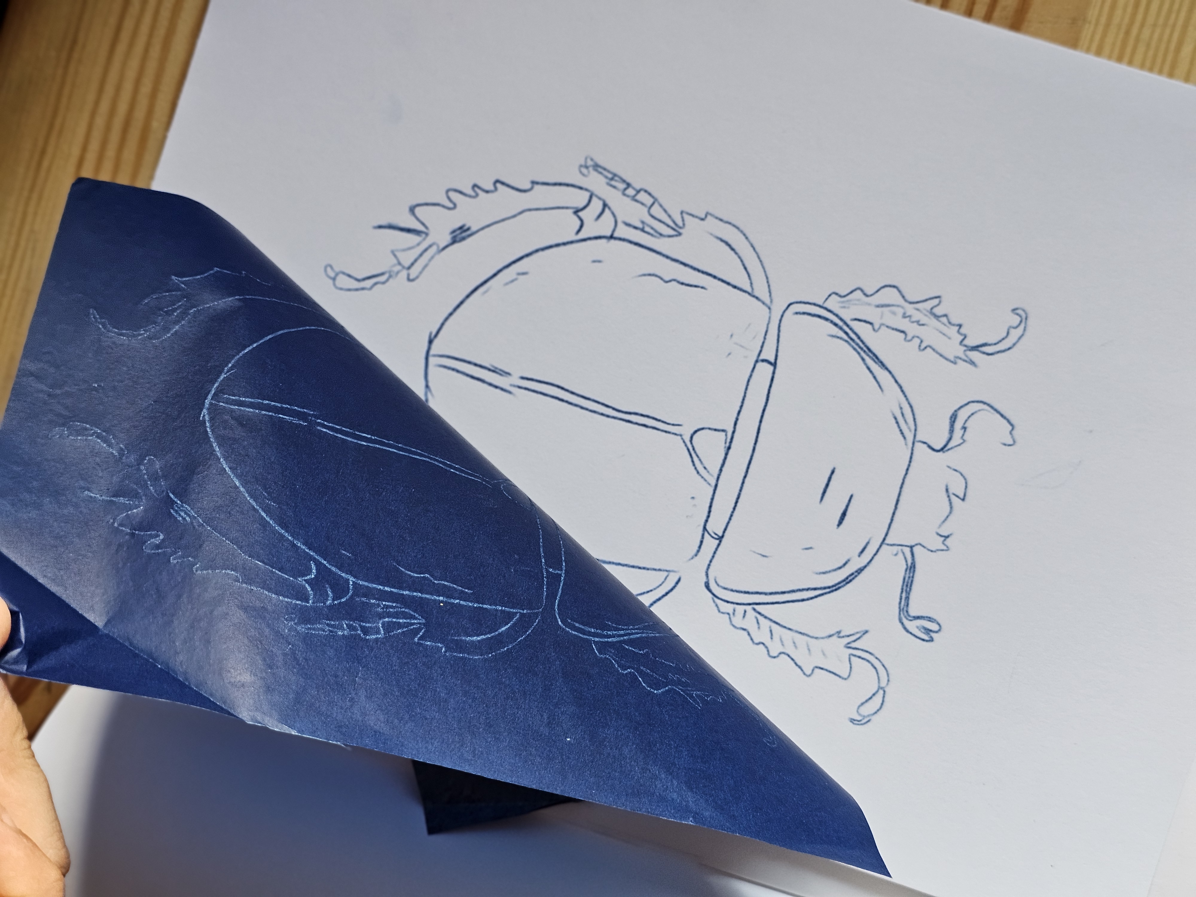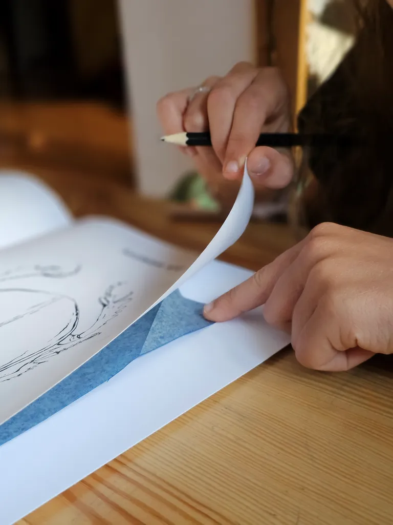 Zadaniem dziecka jest przeniesienie wybranej ilustracji z kolorowanki przy pomocy kalki na arkusz papieru.
