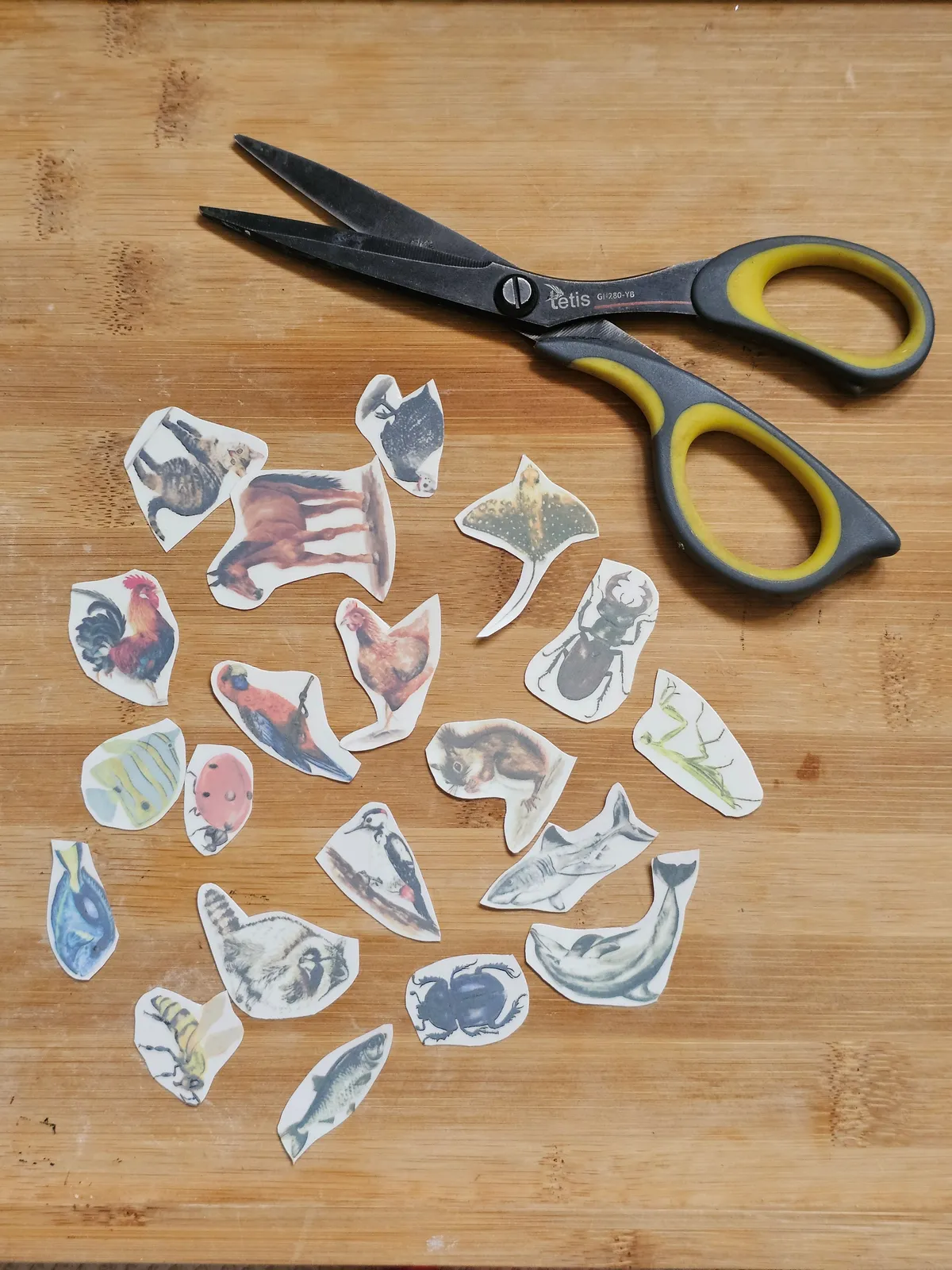 - 4 pojemniki/koszyki opatrzone nazwami: PTAKI, SSAKI, RYBY, OWADY.