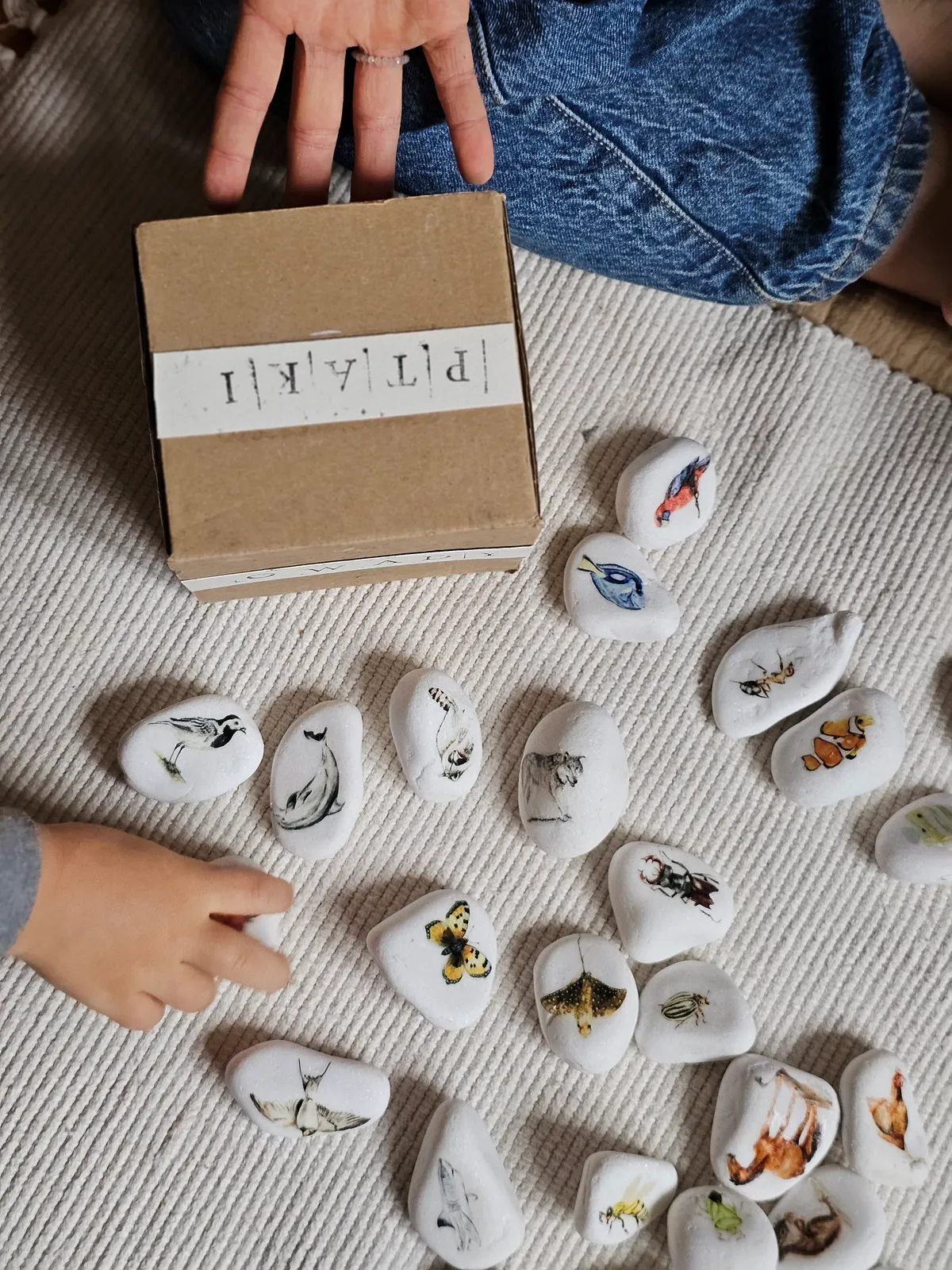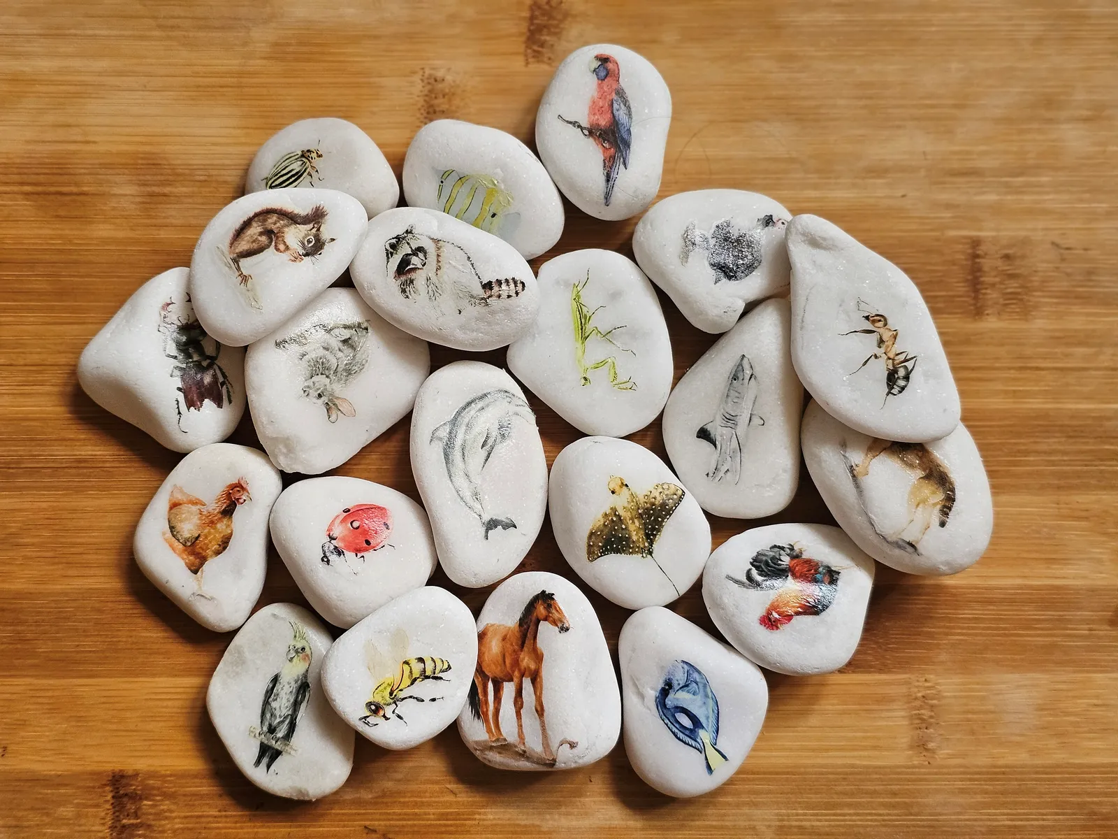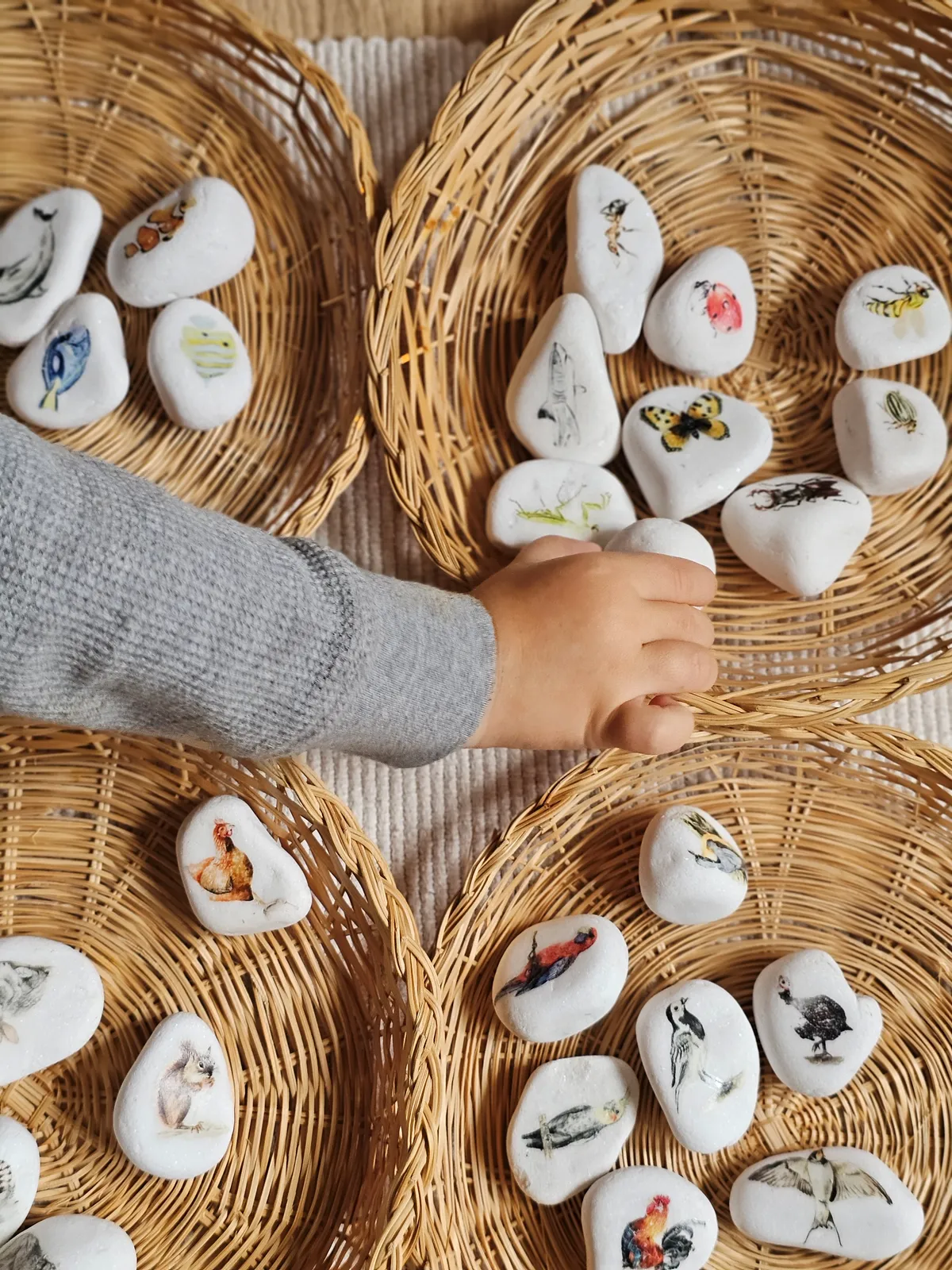 Tak przygotowane kamienie posłużą długo i będą świetną pomocą edukacyjną. Można schować je w woreczku i wykorzystać do wielu zabaw. Układanie, przekładanie, grupowanie, budowanie, przerzucanie, segregowanie... Pomysłów jest tyle ile dziecięcych głów! A przy tych wszystkich działaniach, zupełnie mimowolnie dziecko przygląda się zwierzakom, poznaje ich nazwy i wygląd...