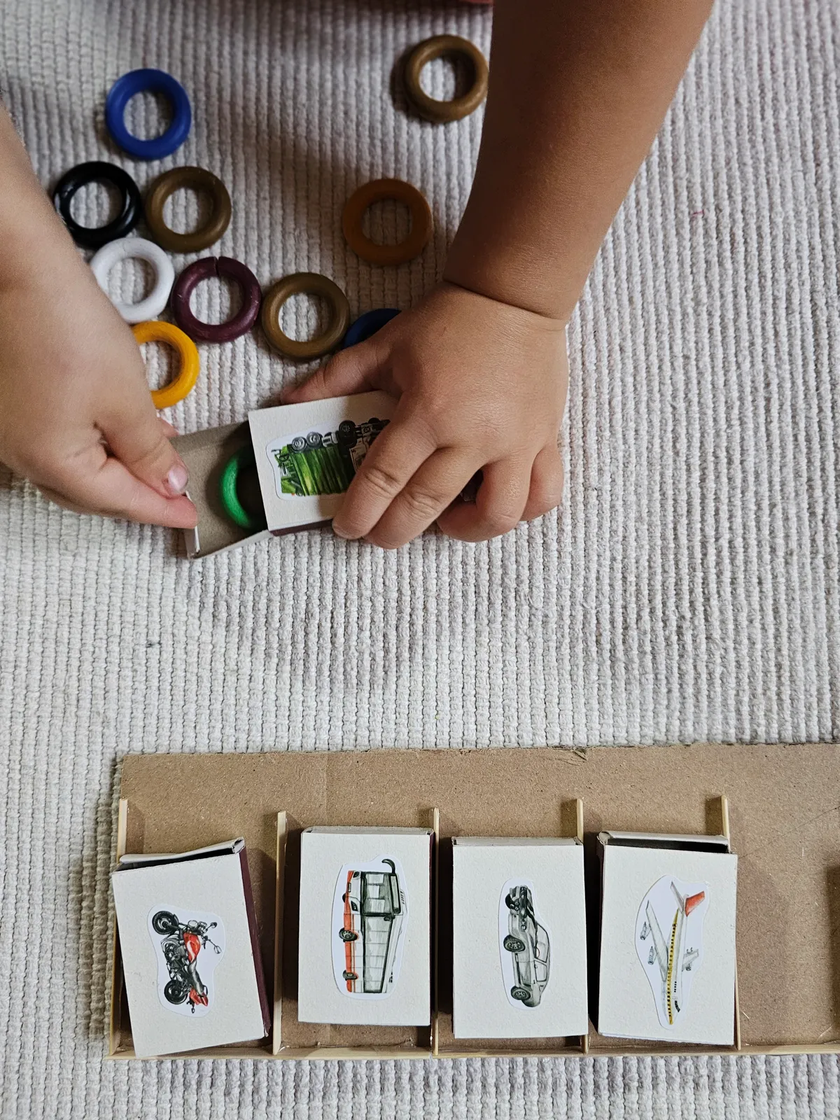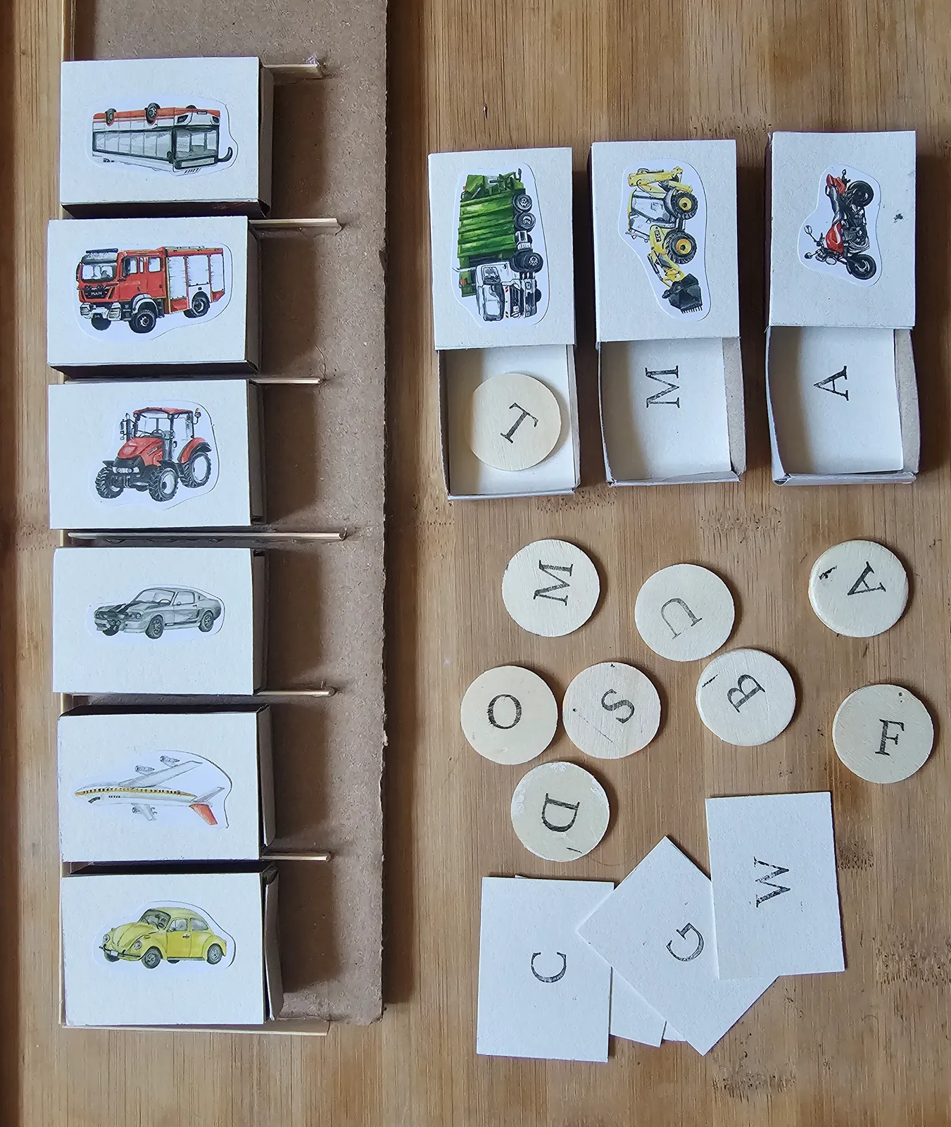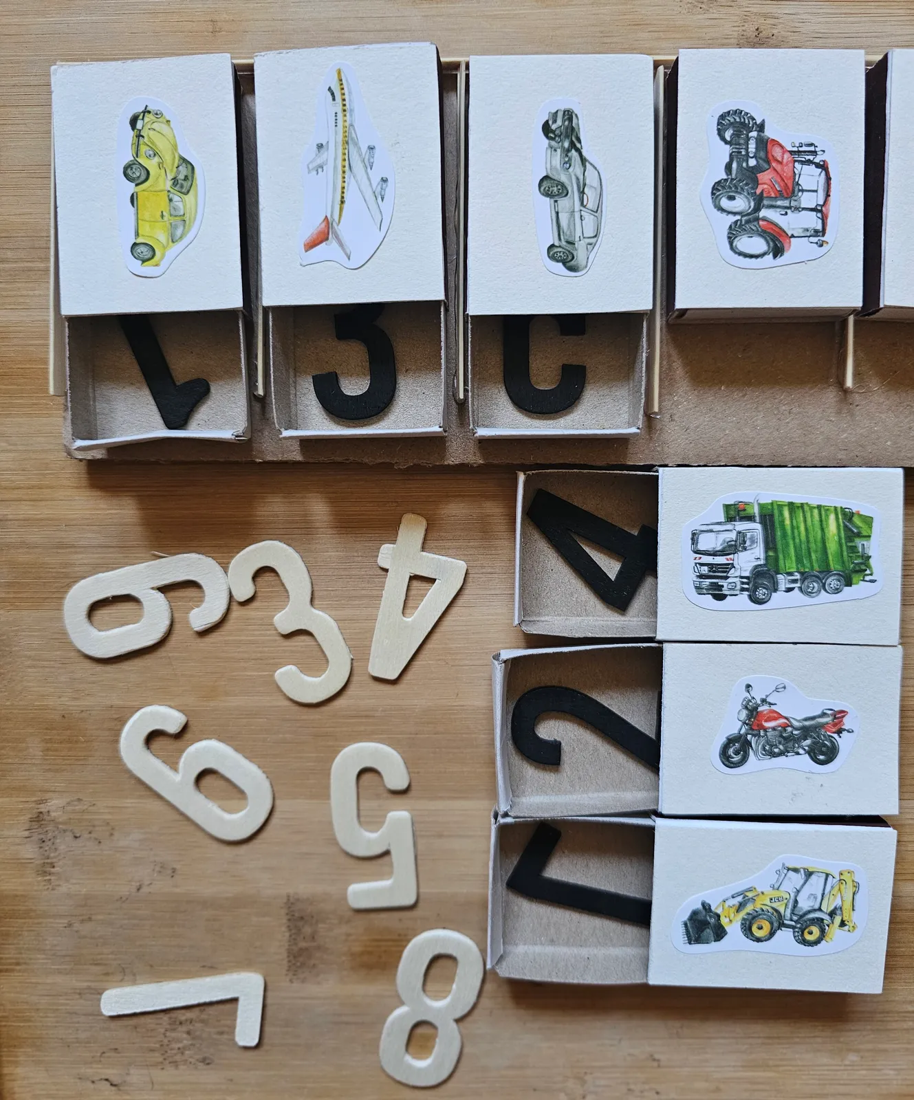 Raz wykonane pudełeczka z pojazdami posłużą do różnych zabaw. My podsuwamy pomysł na trzy różne warianty, które można wybrać w zależności od wieku dziecka i od tego na jakim etapie edukacyjnym się ono znajduje.