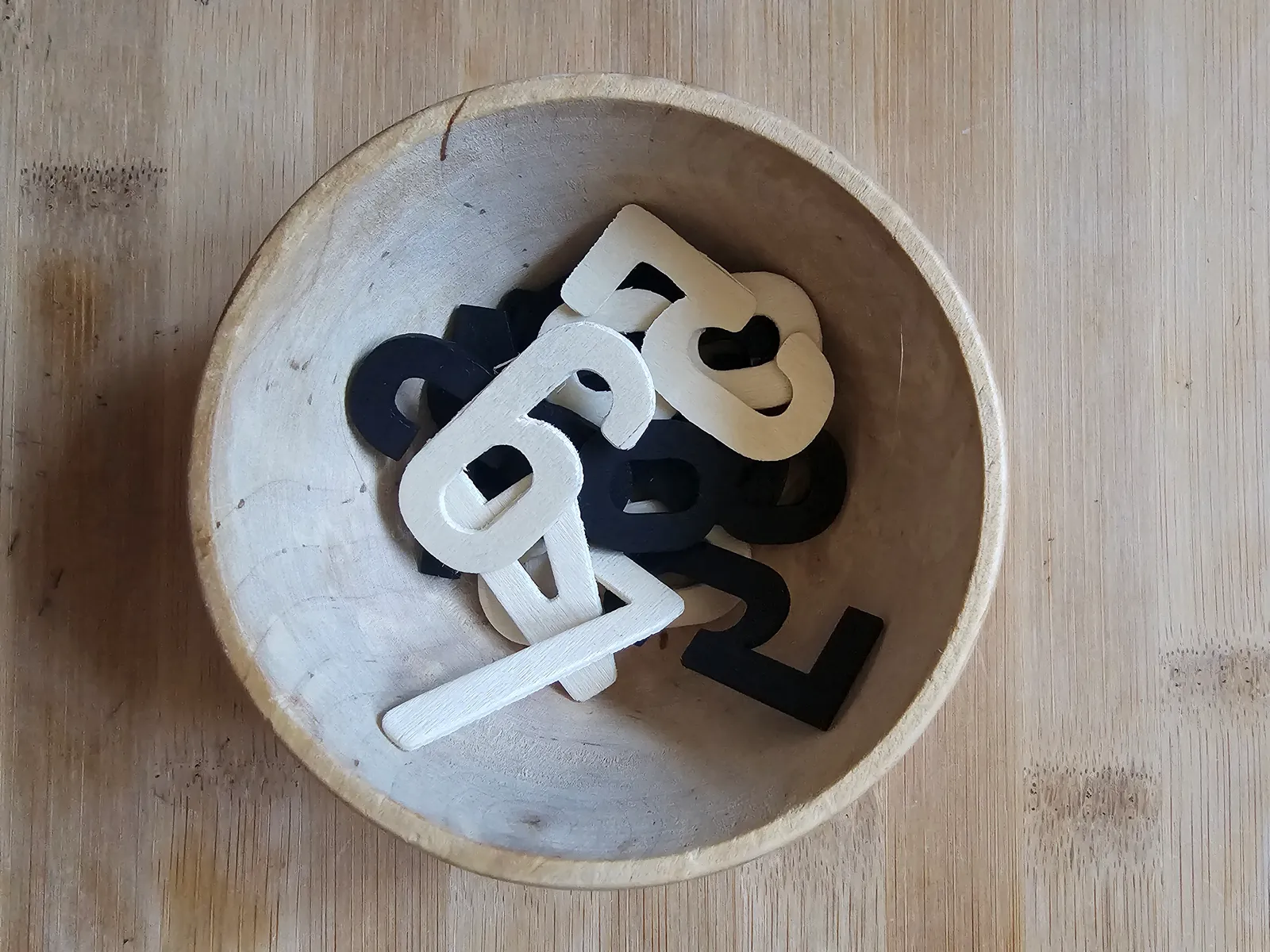 - małe cyferki ze sklejki (Action).