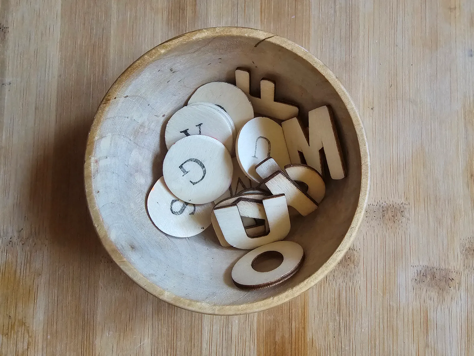 - małe literki ze sklejki (Action),