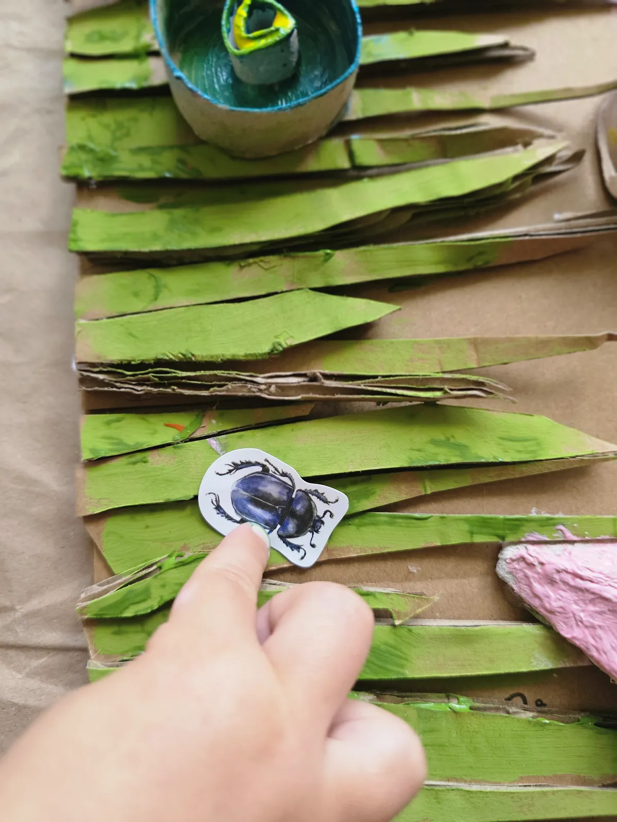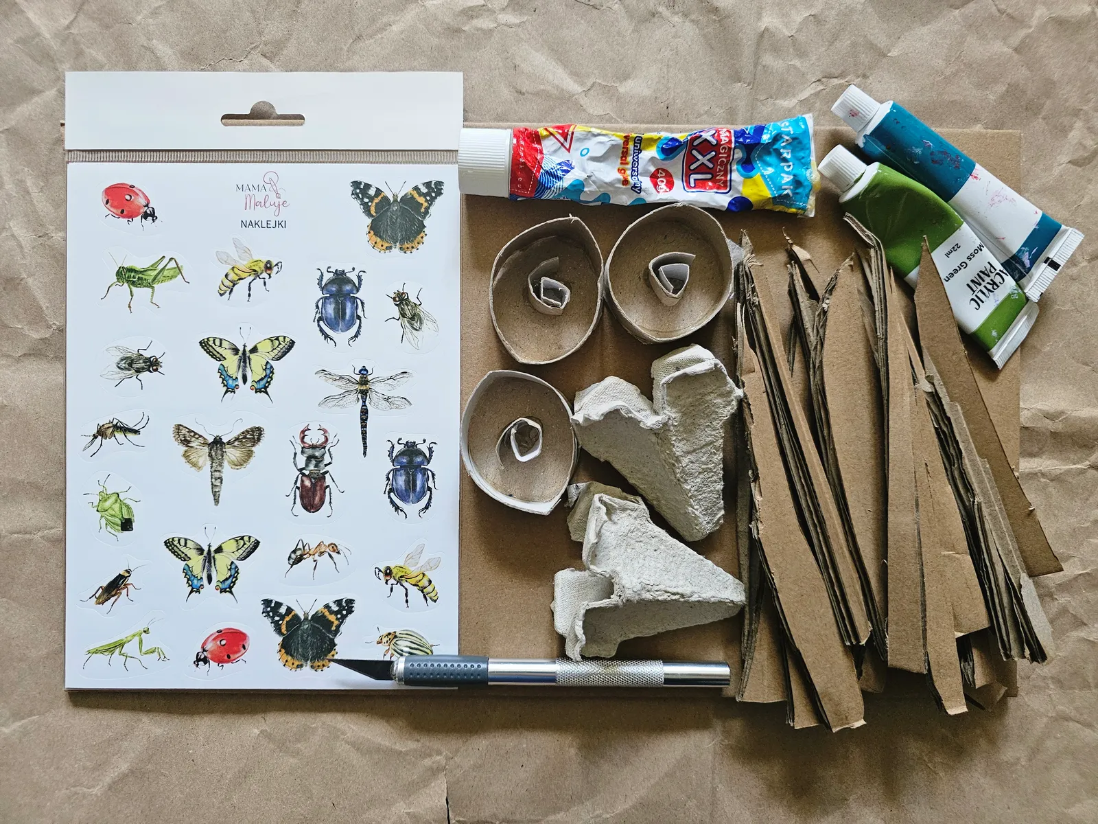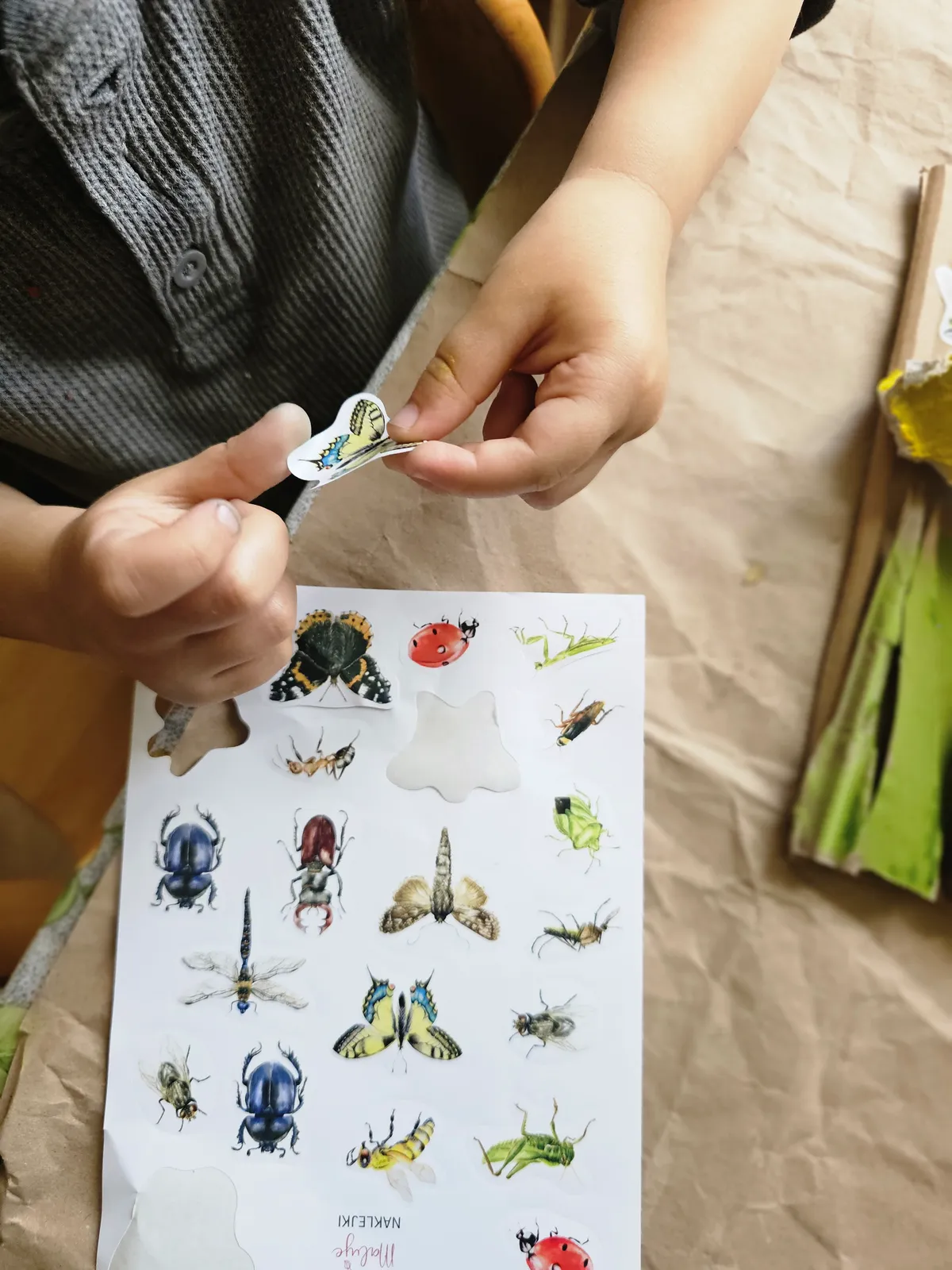 Taka wesoła twórczość to pomysł na ciekawą lekcję przyrody, lekcję plastyki, lub... zajęcia językowe. Można przecież przyklejać owady i wymieniać ich nazwy po angielsku. Jedno jest pewne: malowanie trójwymiarowych, wypukłych elementów to doskonałe ćwiczenie rozwijające motorykę małą i koncentrację uwagi, a użycie naklejek nadaje tej zabawie wartość edukacyjną.