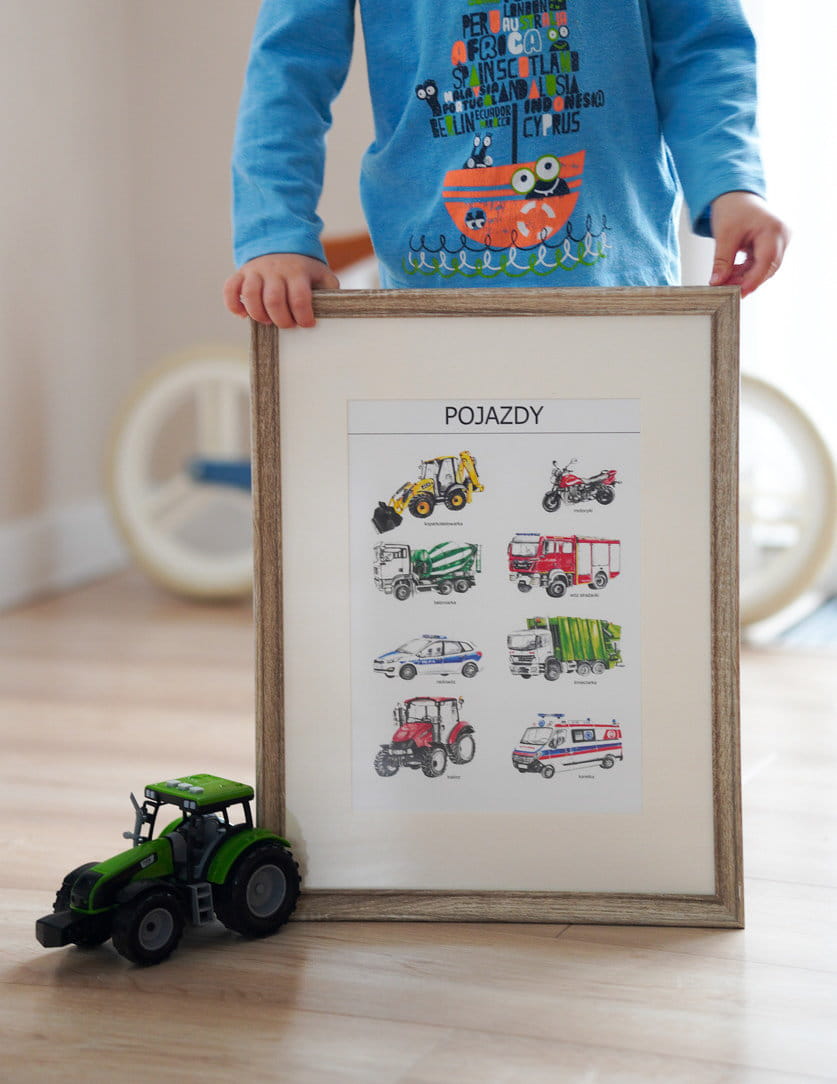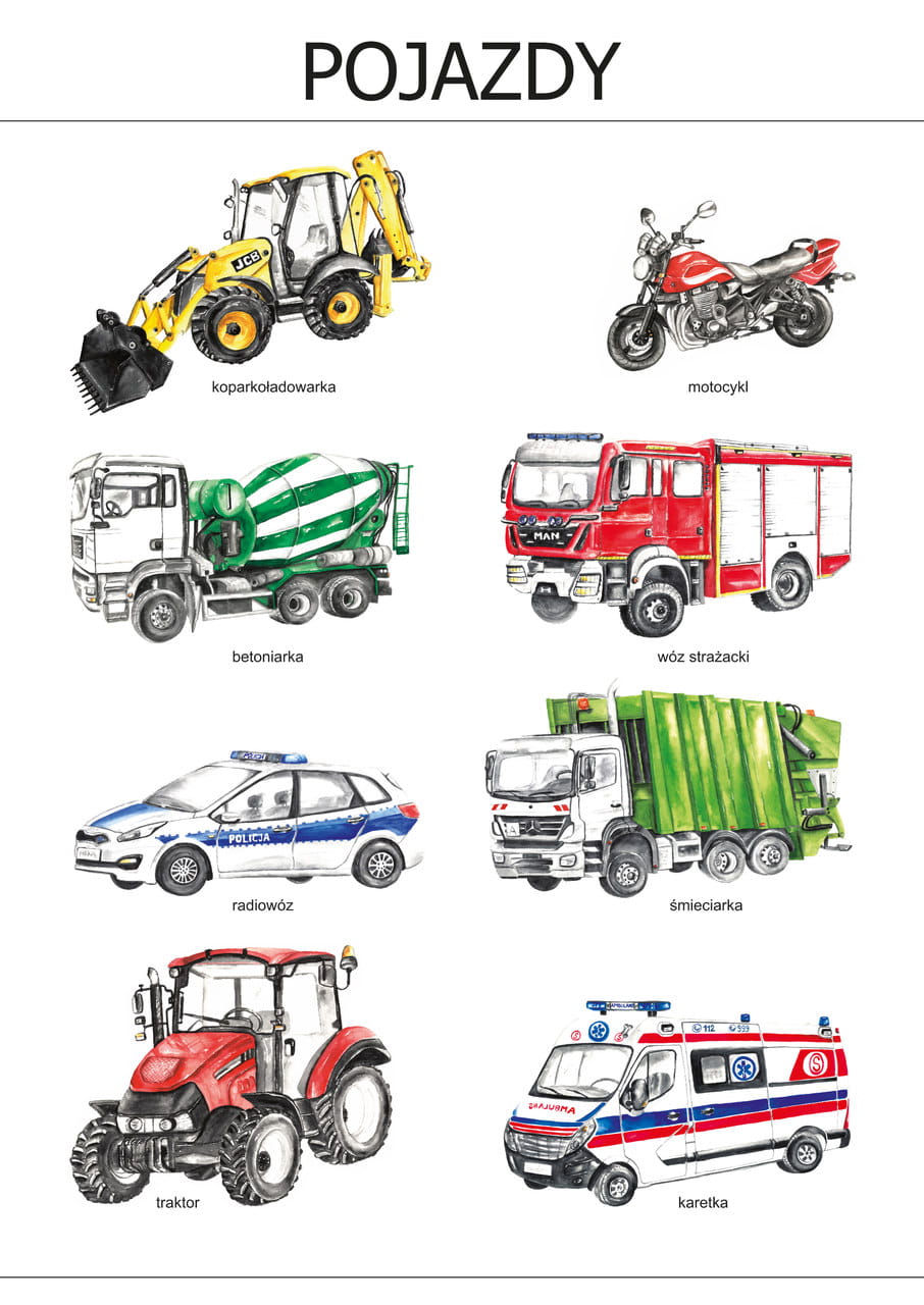 Plakat Pojazdy A4, realistyczne malowane ilustracje