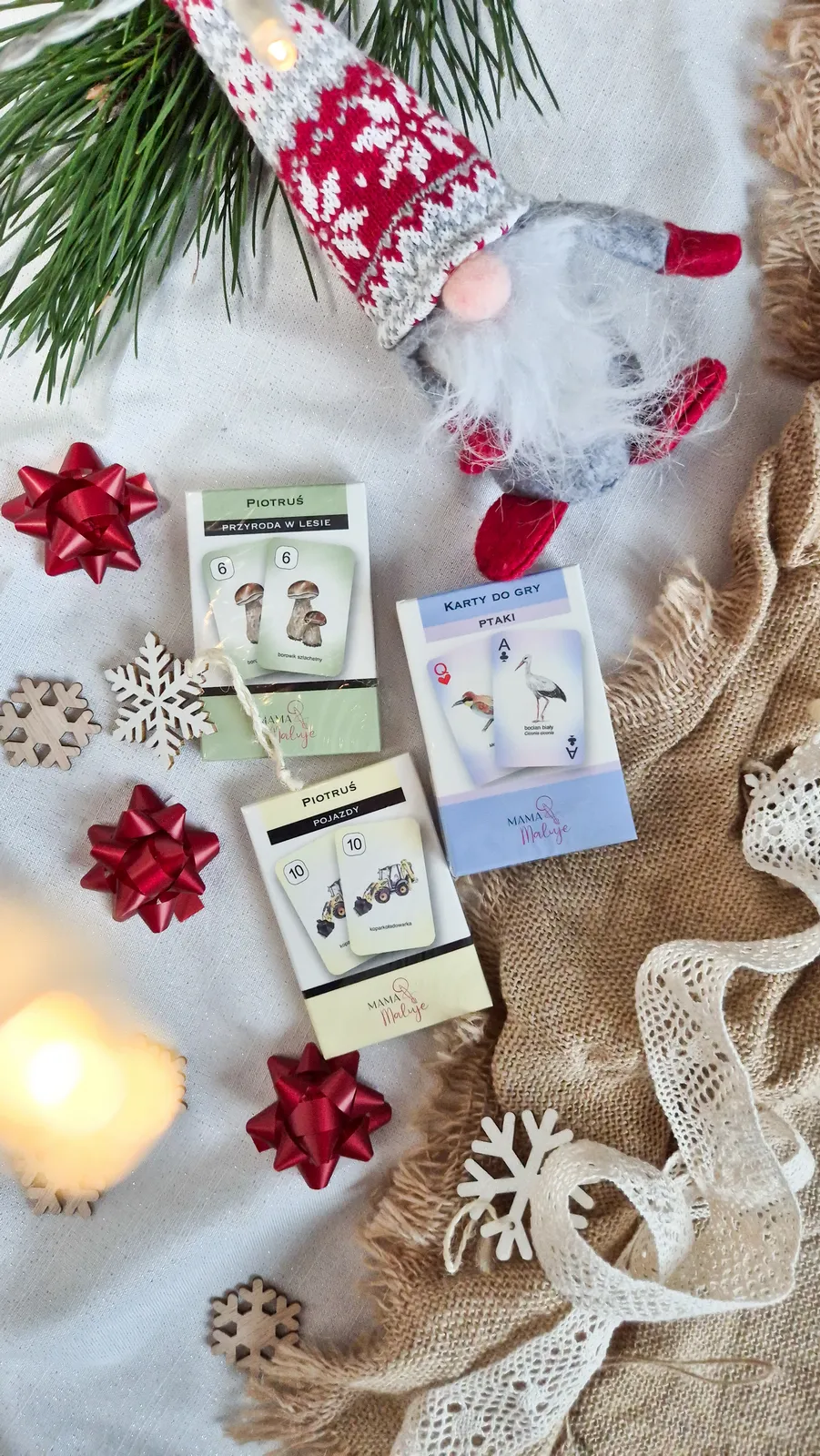 Gry karciane dla dzieci Mama Maluje to klasyczne zabawy w nowoczesnym wydaniu. Karty dla dzieci z ręcznie malowanymi ilustracjami łączą tradycyjne zasady gier z poznawaniem przyrody, ptaków i pojazdów.